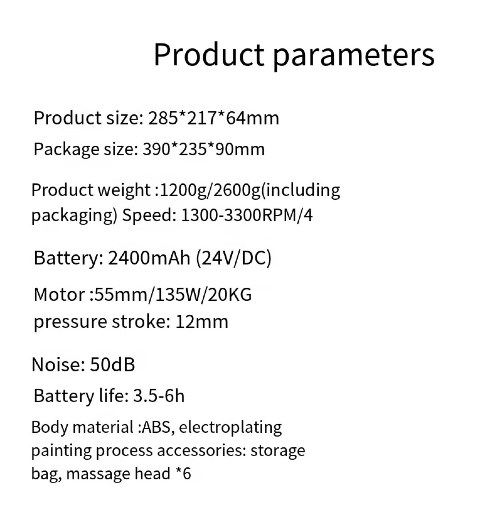 Massage gun * 1+ Massage head * 6+storage bag * 1